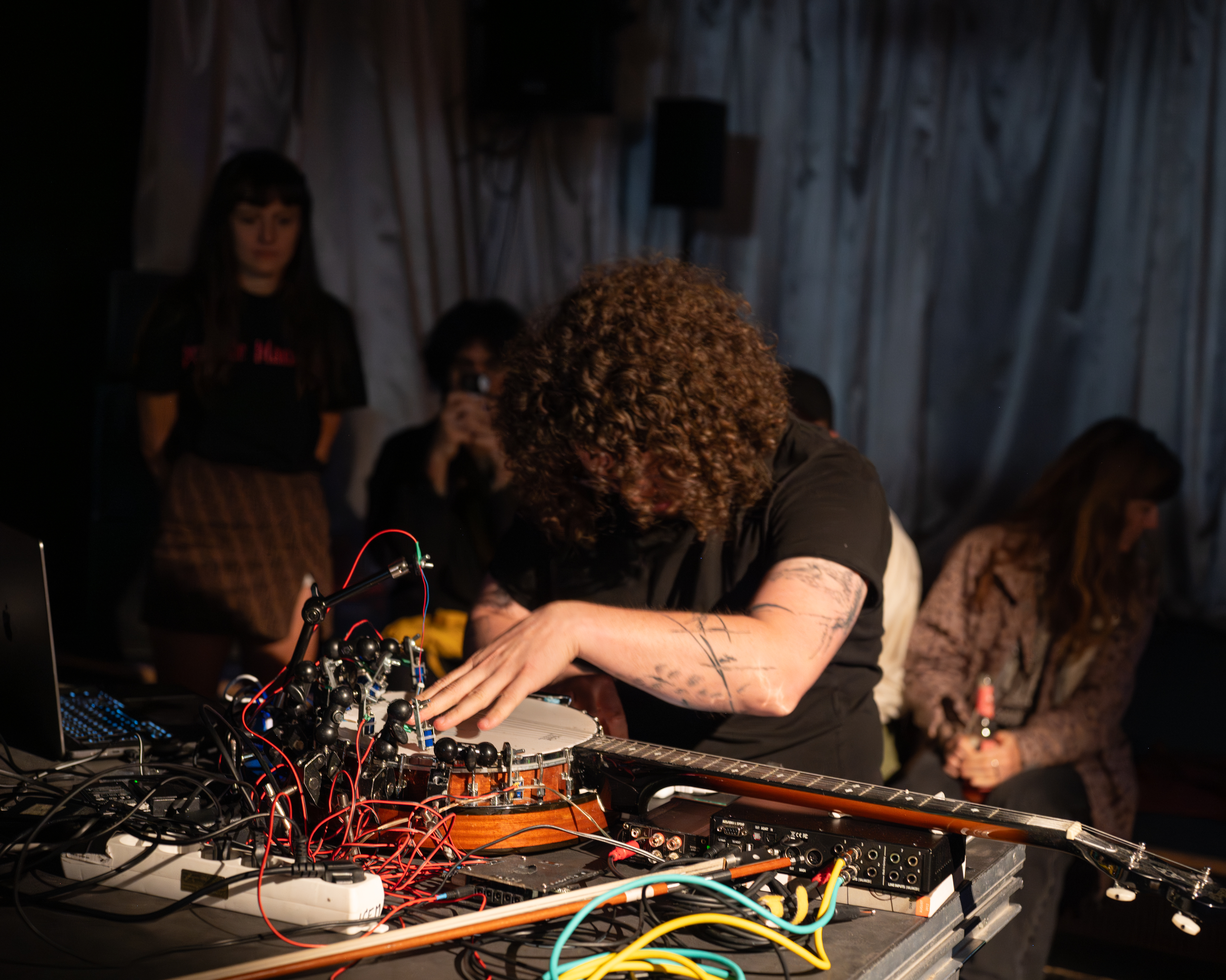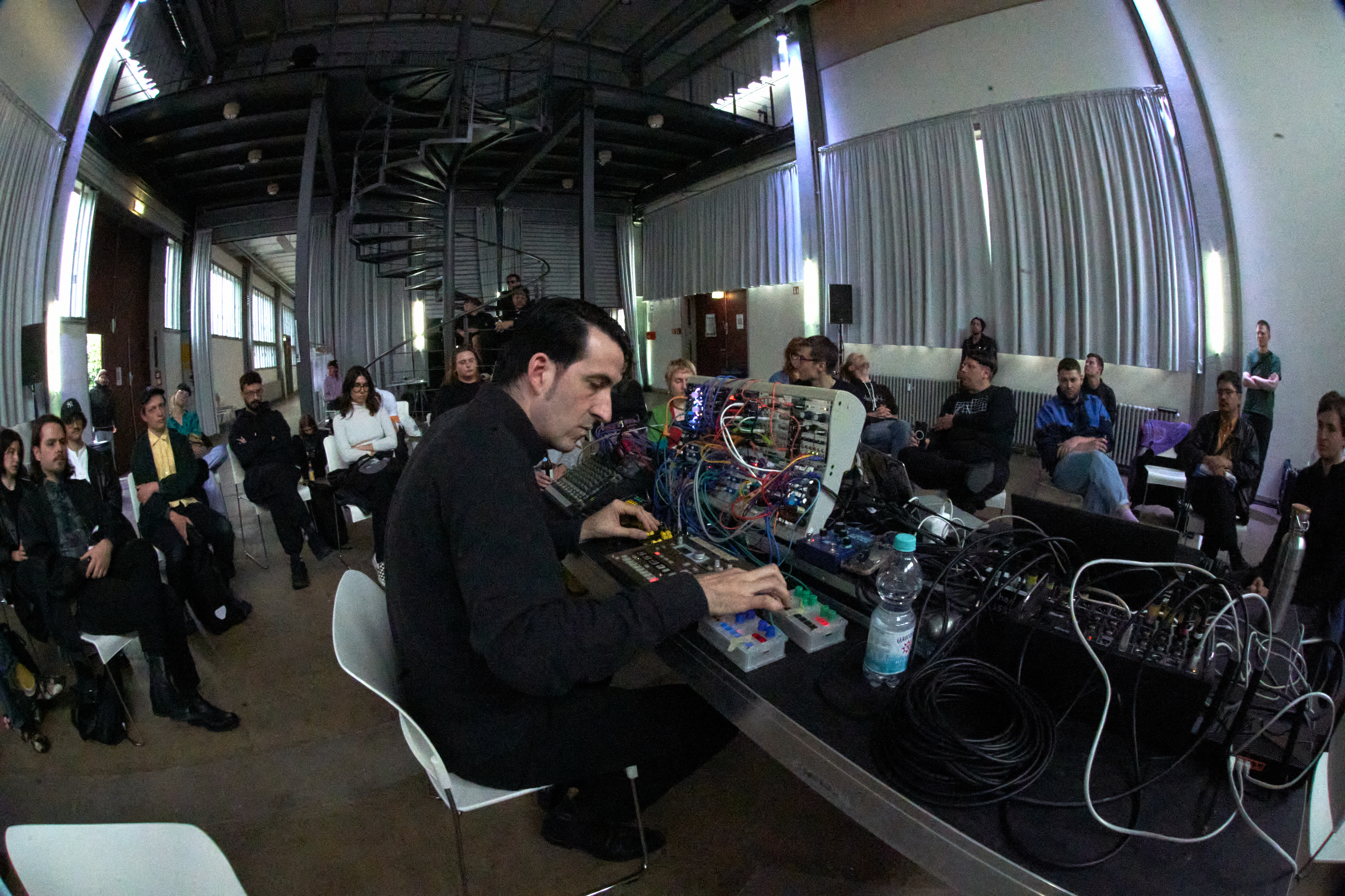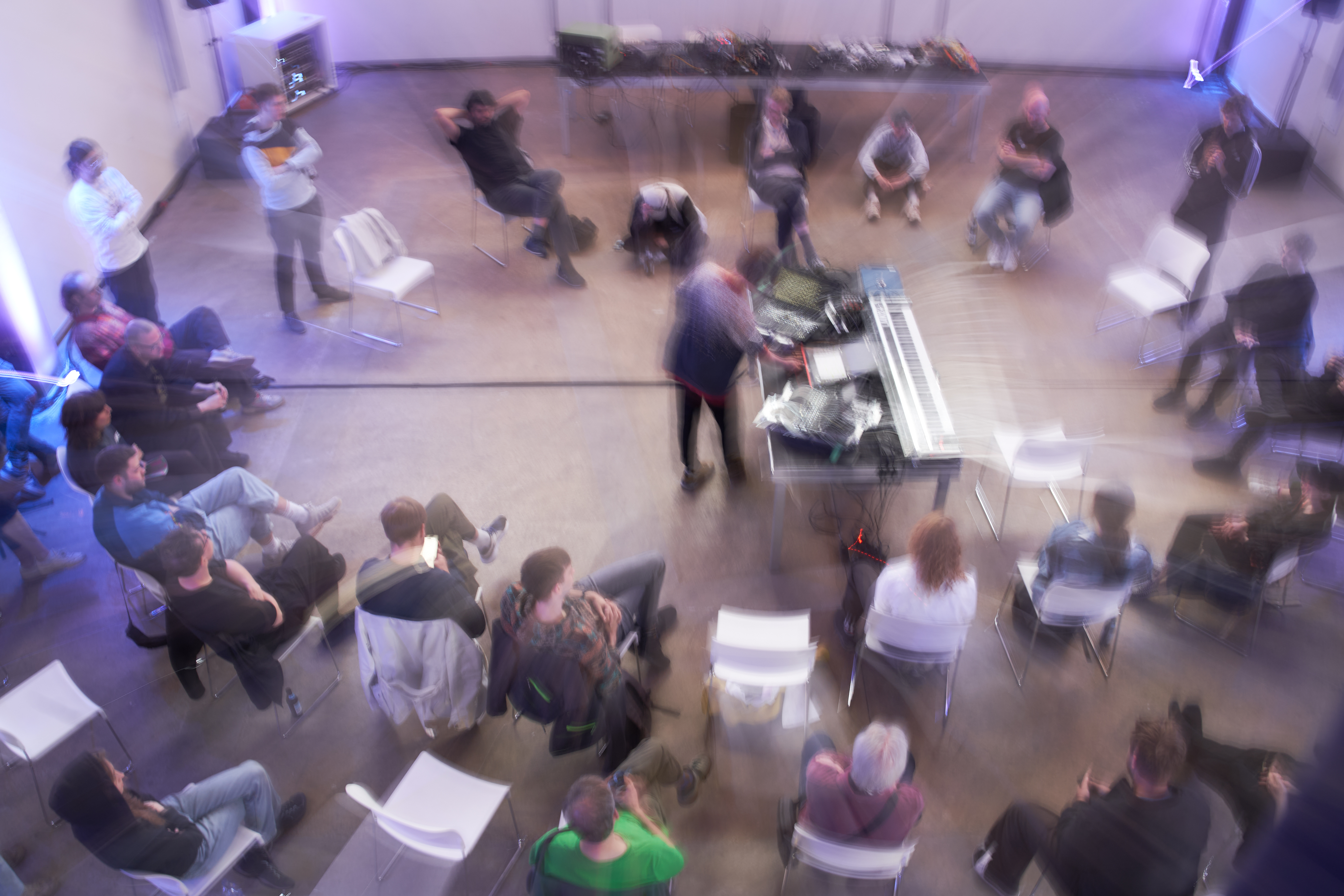 the stromspiesser series consists of concerts of live, experimental, electronic music in spaces which are not specifically designed for this purpose. Instead of theatres or concert halls, locations more like exhibition spaces, bicycle shops, workshops, parking garages or parks are of interest.
